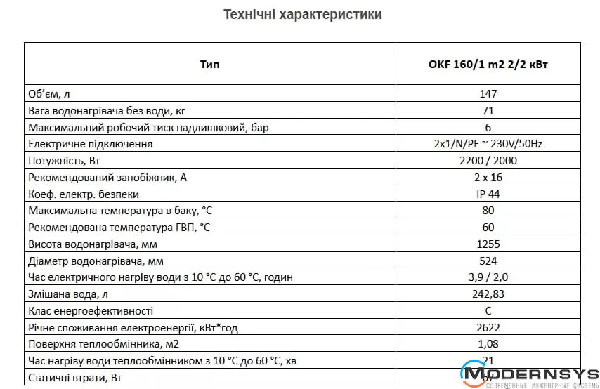 Технічні характеристики: Комбінований бойлер Drazice (Дражица) OKF 160/1m 2/2kw