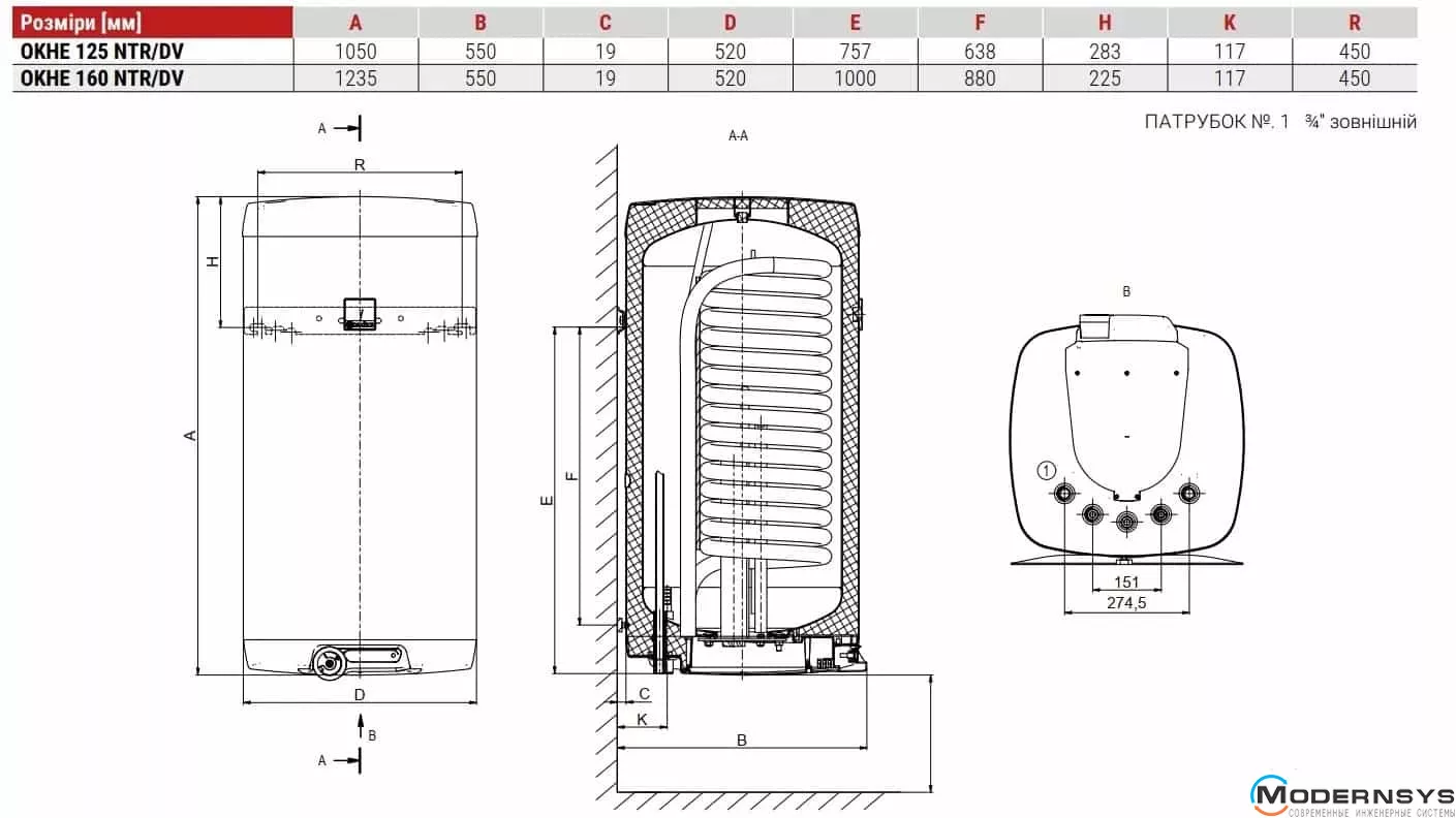 Технічні характеристики: Комбінований бойлер Drazice (Дражица) OKHE 125 NTR/DV