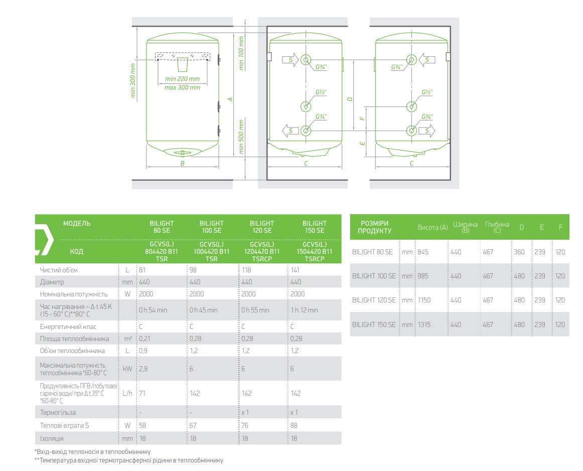 Технічні характеристики: Комбінований бойлер Tesy (Теси) BILIGHT вертикальний 120 л. - GCVSL 1204420 B11 TSRP