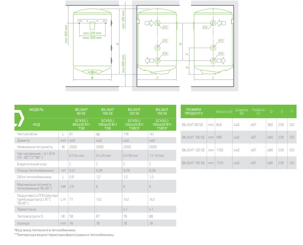 Технічні характеристики: Комбінований бойлер Tesy (Теси) BILIGHT вертикальний 80 л. - GCVSL 804420 B11 TSR