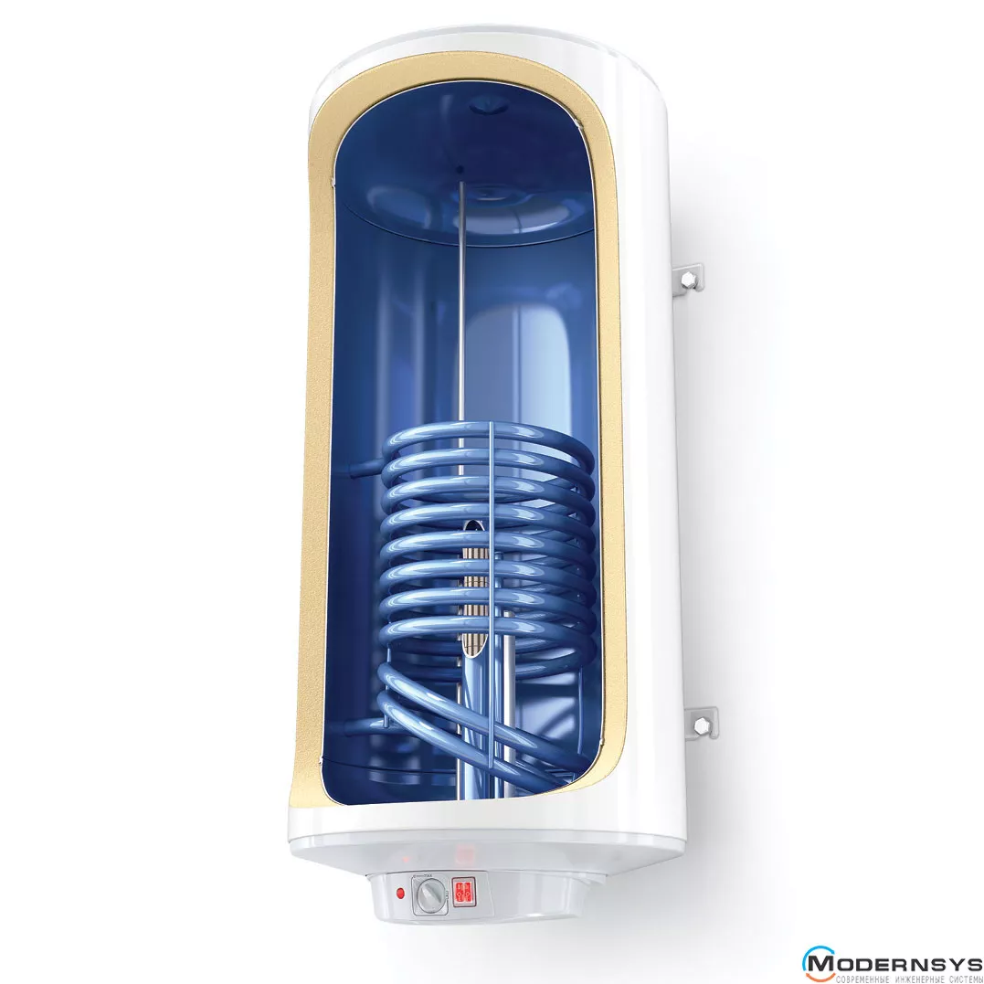 Бойлер циліндричної форми, нагрівання води в якому здійснюється двома «сухіми» ТЕНами, які працюють поперемінно для оптимального нагрівання та розвантаження електромережі. Для нагрівання в ощадливому режимі достатньо включити один з тенів, якщо потрібно швидко нагріти воду — увімкніть обидва тени.