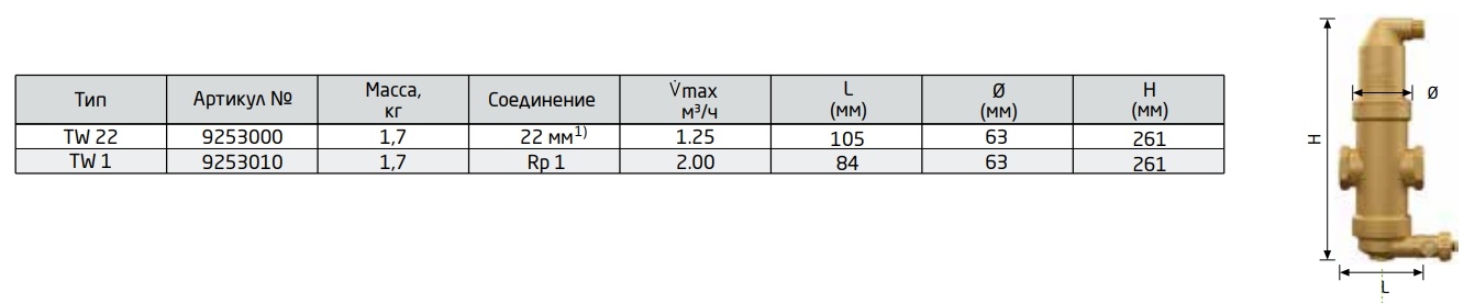 Технічні характеристики: Комбінований сепаратор повітря та шламу Reflex (Рефлекс) extwin TW 1