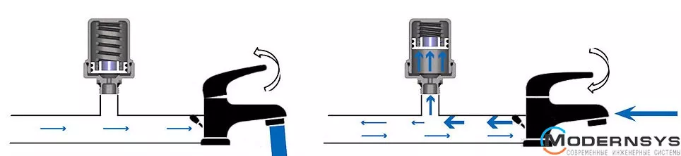 Крім того, компенсатор гідродинамічних ударів оберігає квартирні трубопроводи від зростання тиску при температурному розширенні води, що відбувається за відсутності водорозбору на ділянці замкнутого трубопроводу.
