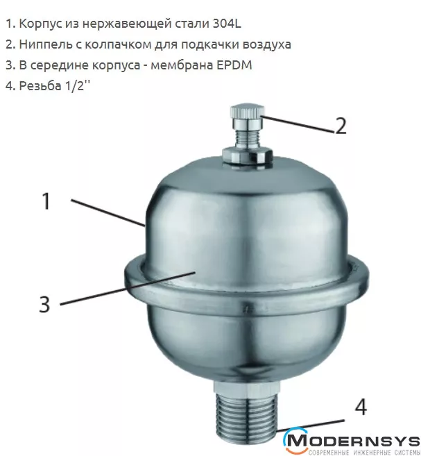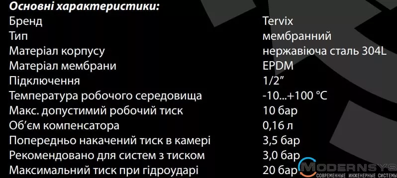 Технічні характеристики: Компенсатор гідродинамічних ударів 0.16л, 10 бар, нержавіюча сталь, Tervix (Тервикс) Pro Line Hydra