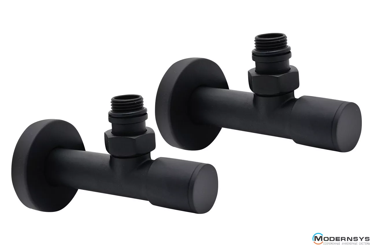 Кран кутовий подовжений вентильний (комплект 2 шт), служить для підключення сушки для рушників. Виготовлений із латуні, Чорний матовий колір. Максимальний робочий тиск 20 бар. Різьблення: Зовнішня. Діаметр підключення: 1/2"х1/2".
