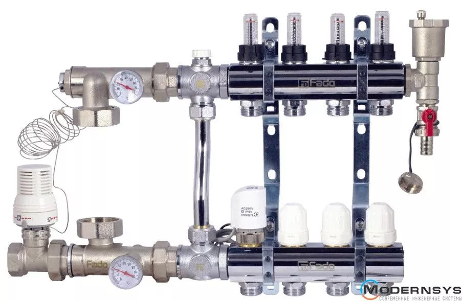 Технічні характеристики: Колектор для теплої підлоги у зборі Fado (Фадо) 4 виходу (SEN04)