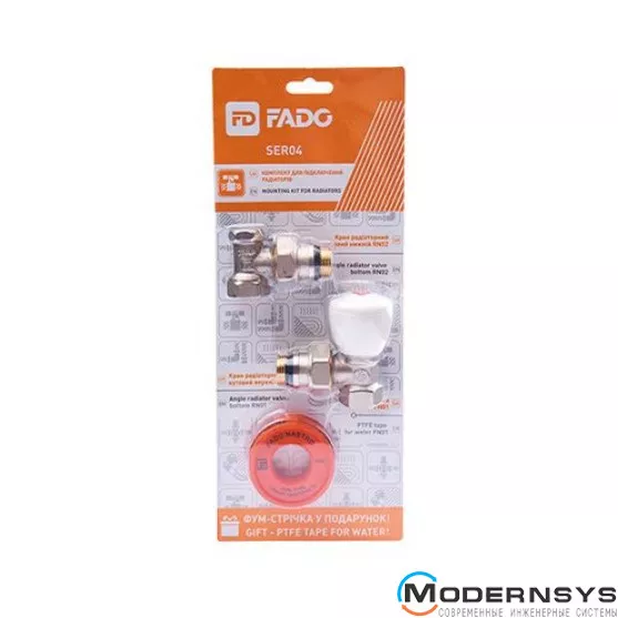 Комплект для під'єднання радіатора Fado New SER04. Опалювальні прилади – це елементи системи опалення приміщень. Вони служать передачі тепла повітрі приміщення від теплоносія (переважно води). Для того щоб підвищити зручність монтажу та регулювання, радіатори рекомендується підключати спеціальними кранами – радіаторною. ТМ FADO пропонує комплект для підключення опалювальних приладів, що складається із трьох елементів: