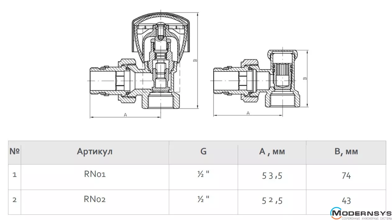 1. Кран радіаторний верхній кутовий RN01 використовується для регулювання тепловіддачі опалювального приладу. Як ручка використовується ручка з ABS-пластика. Завдяки вентильній структурі затвора можна встановлювати шток у будь-яке монтажне положення. Це дозволяє налаштувати будь-яке значення витрати теплоносія в діапазоні від повністю закритого до повністю відкритого положення крана.