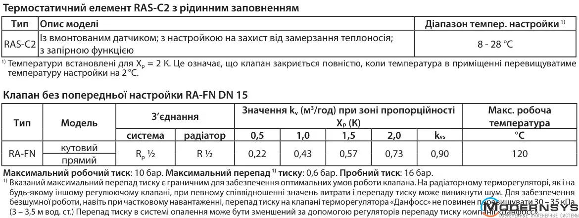 Технічні характеристики: Комплект кранів термостатичний Danfoss (Данфос) Ду15+RAS-C2 кутовий