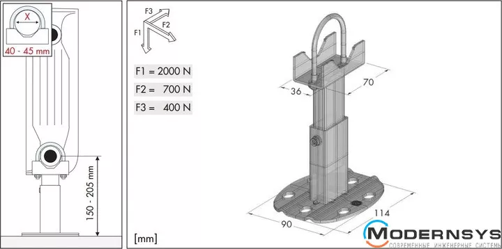 Враховуйте характеристики стіни під час вибору шурупів, дюбелів та кількості кронштейнів для встановлення радіатора. У компанії розробили кілька спеціалізованих рішень, як настінного, так підлогового монтажу, відповідних класу 3 VDI 036, тобто. найвищий рівень безпеки, крім індивідуально визначених розпоряджень в особливих умовах.