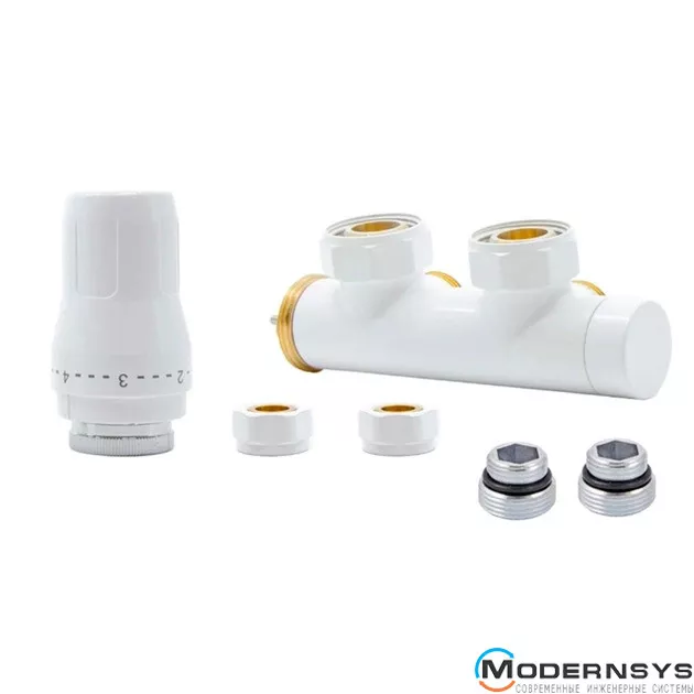 Технічні характеристики: Комплект радіаторний Heat Base (Хит Бейс) Duo-Plex, 3/4 x 16x2 mm PEX, кутовий лівий, 2 шт ніпеля, білий