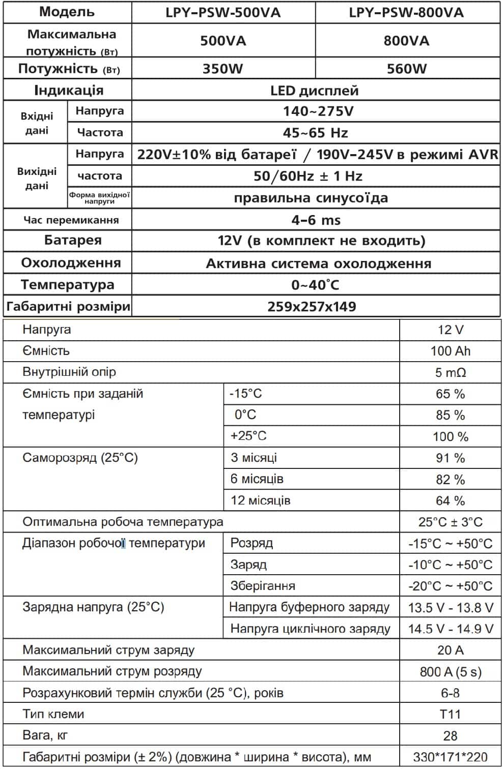 Технічні характеристики: Комплект резервного живлення LogicPower (Лоджик Повер) 800 + мультигелева батарея 1280 Ватт