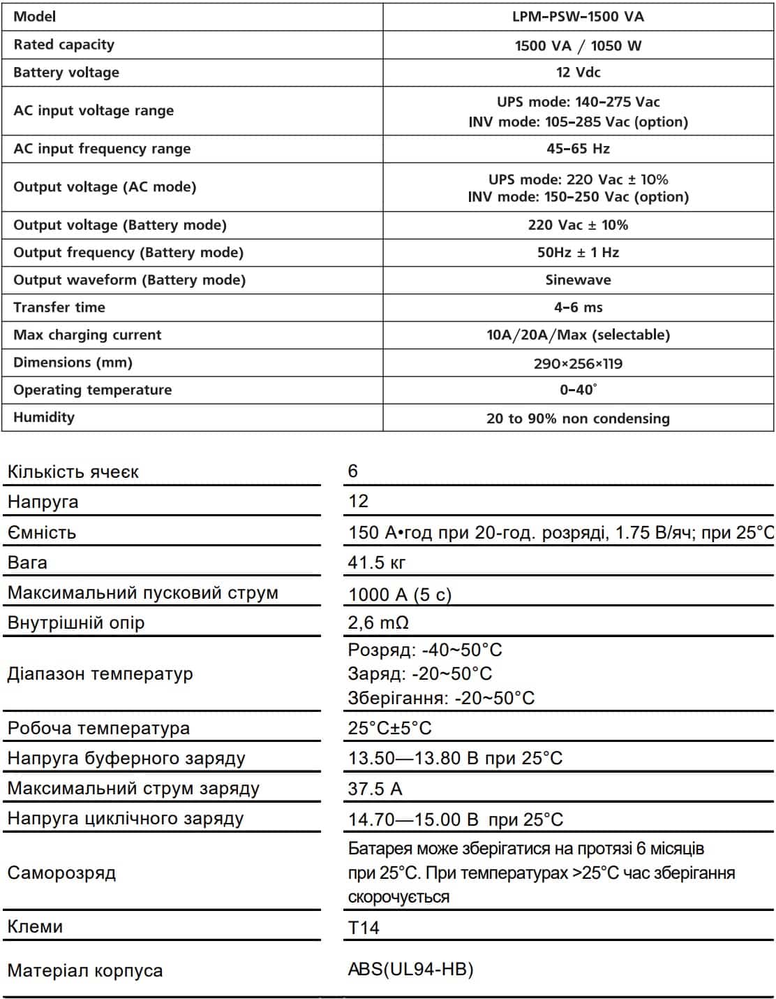 Джерело безперебійного живлення з правильною синусоїдою потужністю 1500/1050 VA/W виконує 2 основні функції: стабілізація напруги (на вході - 140-275, на виході - 220±10%V) і перетворення постійного струму від акумулятора 2 . UPS системи безперебійного живлення управляється мікропроцесором. Акумуляторна батарея забезпечує подачу електроенергії в режимі резервного живлення.