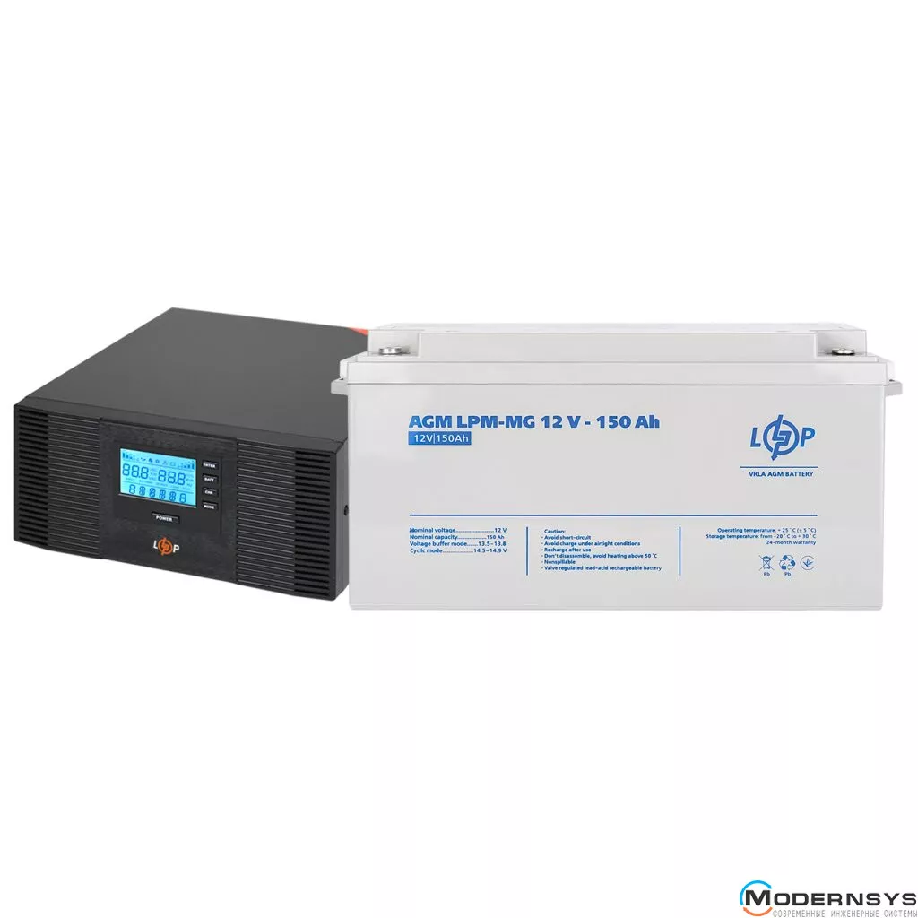 Комплект резервного живлення LogicPower ДБЖ B1500 + мультигелева батарея (1200W, 1440 W, 1800W) розроблений та введений в експлуатацію для забезпечення безперебійного живлення електричних газових котлів, систем відеоспостереження, комп'ютерної техніки та інших пристроїв, які працюють в режимі 24/7 365. Комплект може бути використаний як джерело безперебійного живлення для бомбосховища.