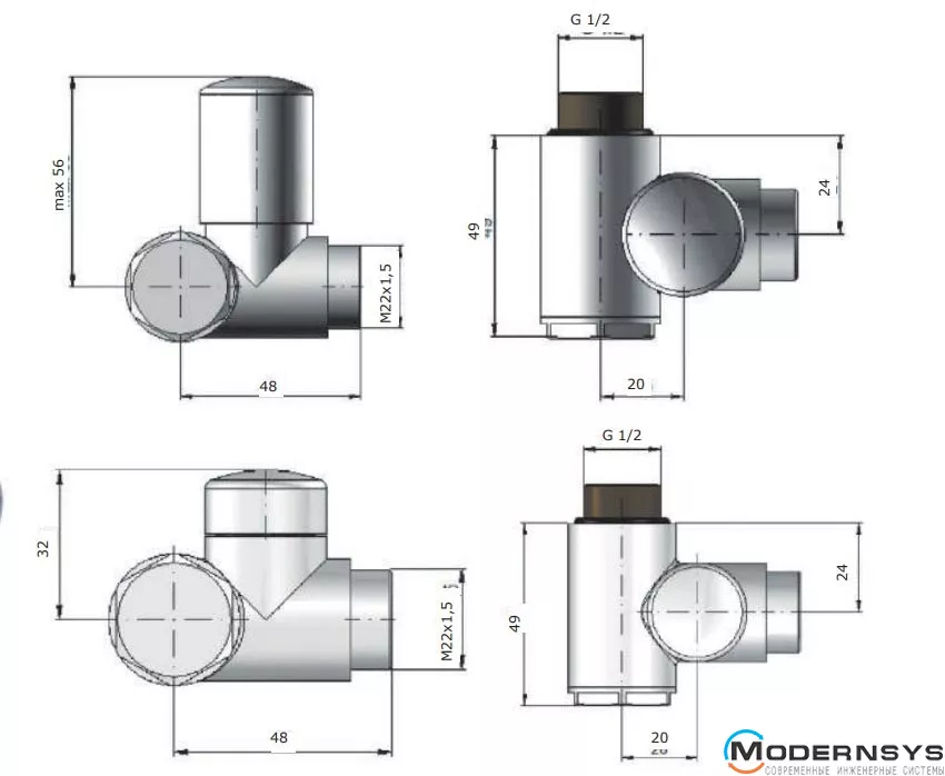 Технічні характеристики: Комплект термостатичний Vario Term (Варио Терм) INTEGRA REGULATED кутовий правий Matte black