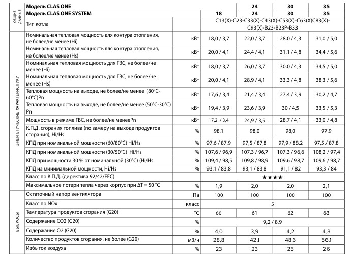 Технічні характеристики: Конденсаційний котел Ariston (Аристон) CLAS ONE SYSTEM 24