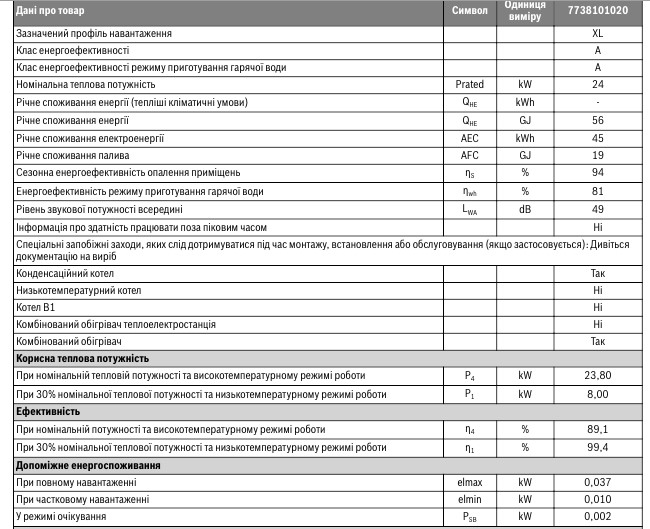 Технічні характеристики: Конденсаційний котел Bosch (Бош) GC5300i WM 24/120