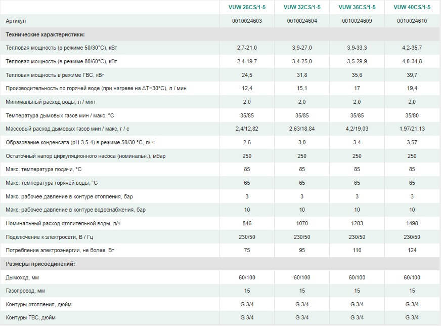 Технічні характеристики: Конденсаційний котел Vaillant (Вайлант) ecoTEC plus VUW 26CS/1-5 (N-INT2) 21 кВт/ГВП 26,5 кВт
