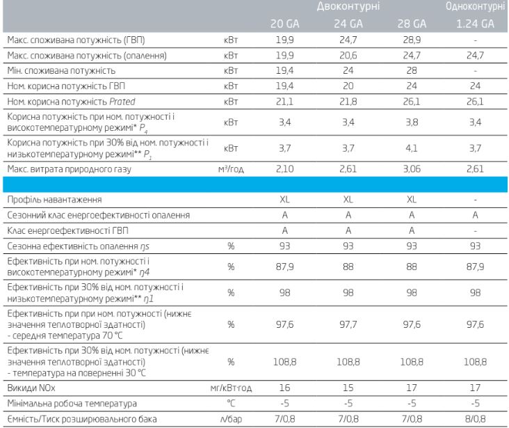 Технічні характеристики для конденсаційного котла Baxi DUO-TEC COMPACT+GA