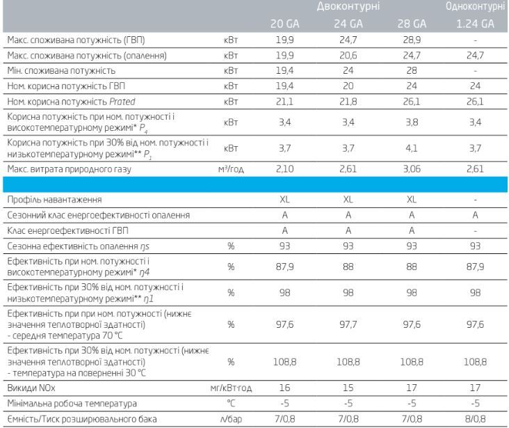 Технічні характеристики для конденсаційного котла Baxi DUO-TEC COMPACT+GA