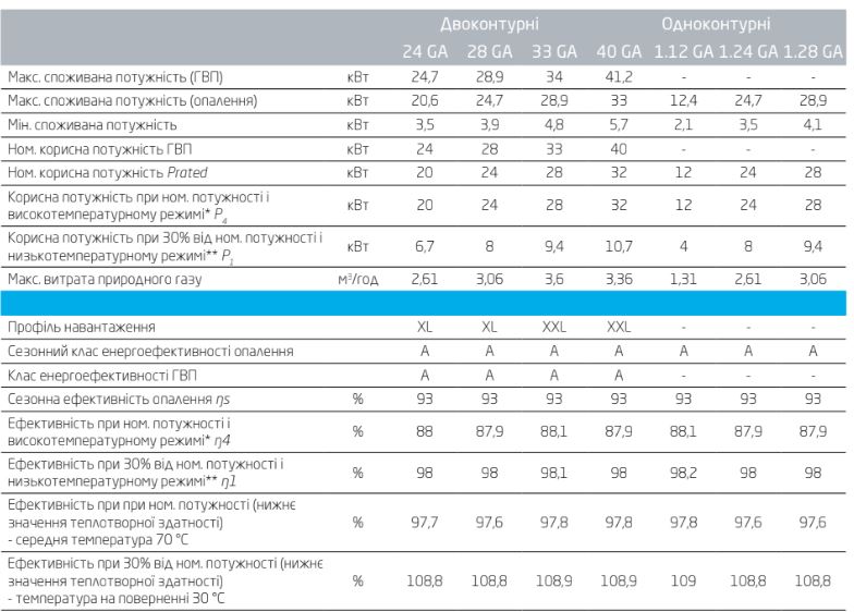Технічні характеристики для конденсаційного котла Baxi LUNA DUO-TEC GA