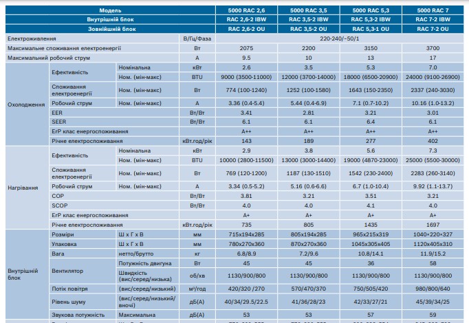 Технічні характеристики: Кондиціонер Bosch (Бош) Climate CL5000i RAC 2,6 кВт