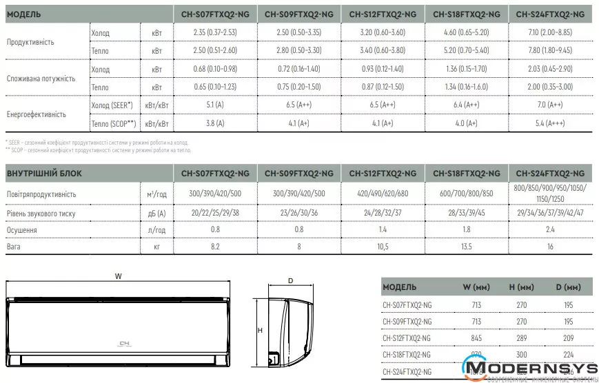 Технічні характеристики: Кондиционер Cooper&Hunter (Купер Хантер) VERITAS CH-S18FTXQ2-NG