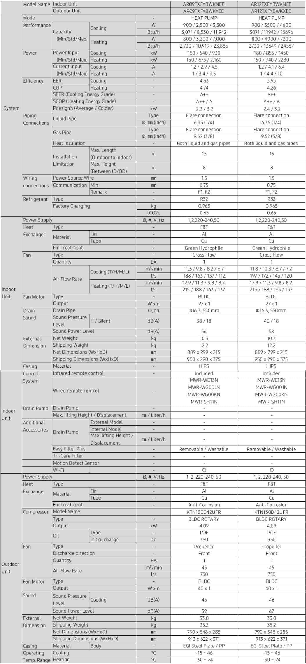 Технічні характеристики: Кондиціонер Samsung (Самсунг) Nordic WiFi 3,5 кВт