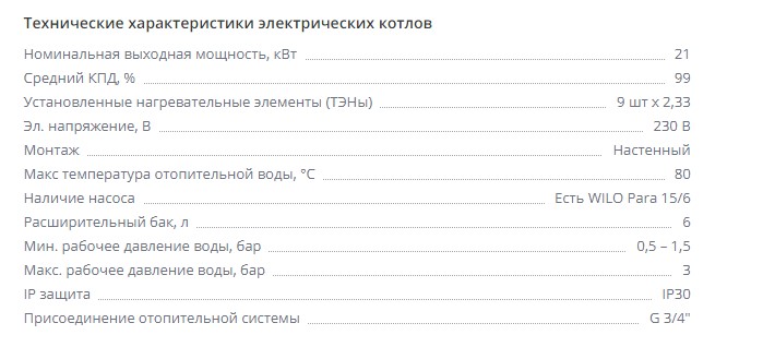 Технічні характеристики: Котел електричний TEKNIX (Техникс) ESPRO 21kW