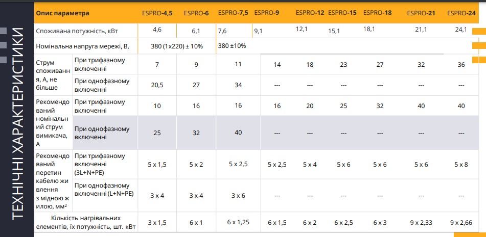 Технічні характеристики: Котел електричний TEKNIX (Техникс) ESPRO/RS 12kW