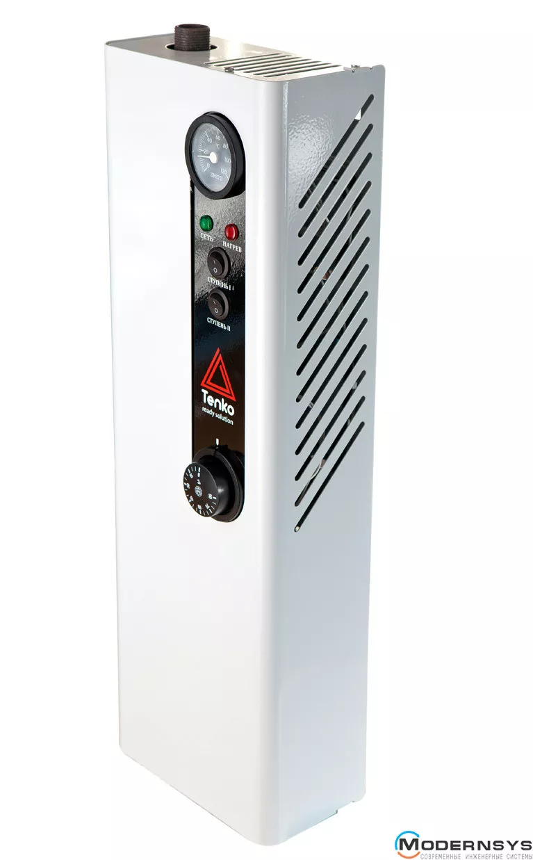 Лінійка електричних котлів «Економ» виробництва компанії Tenko призначена для опалення в автономному режимі приміщень площею до 300 кв.м. або як додатковий пристрій у діючій системі опалення. Серія котлів «Економ» оснащена двоступінчастою системою захисту, яка оберігає пристрій від перегріву, італійським капілярним термостатом IMIT, що плавно регулює температуру теплоносія системи в діапазоні 0 – 90°С, аналоговим термометром, світловими індикаторами для візуального контролю роботи, а також виводом для підключення циркуляційного насоса. Модельний ряд складається з котлів потужністю від 3 до 30 кВт, що мають три (від 3 до 15 кВт) і два (від 18 до 30 кВт) ступені нагрівання. Підключення обладнання здійснюється в однофазні або трифазні мережі напругою 220 або 380 В відповідно. До переваг електричних котлів торгової марки Tenko належать: високий коефіцієнт корисної дії (ККД), простота технічного обслуговування, екологічна чистота, надійність, зручність монтажу, експлуатації та транспортування. У поєднанні з невисокою ціною та низькими експлуатаційними витратами електрокотли серії «Економ» стали ідеальним варіантом щодо співвідношення якості, функціональних можливостей та вартості.