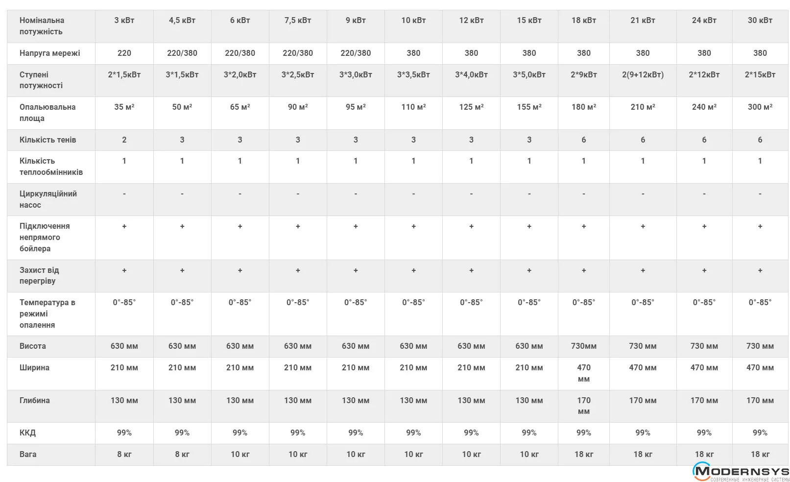 Технічні характеристики: Котел електричний VITERM EKO 21 кВт