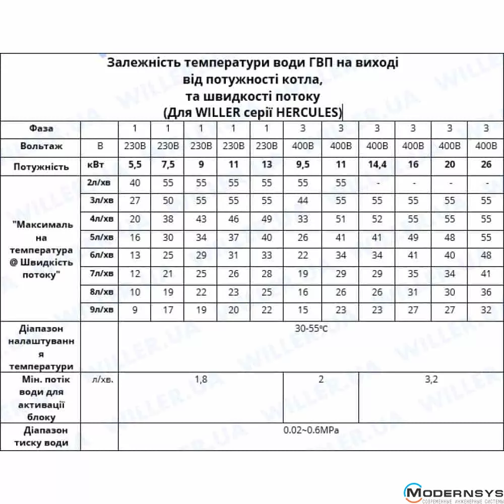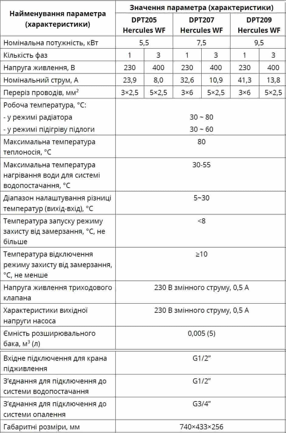 Технічні характеристики: Котел електричний Willer (Виллер) DPT209 Hercules WF двоконтурний