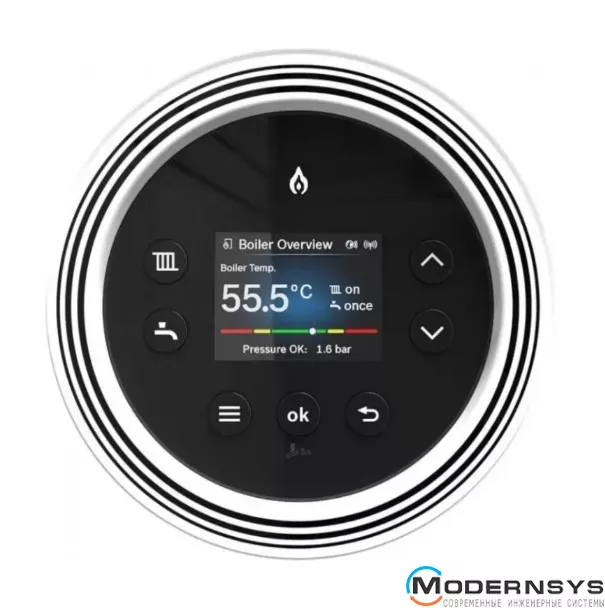 Всі елементи керування котлом продумані для забезпечення максимальної зручності використання. Повнокольоровий сенсорний дисплей HMI 700 забезпечує інтуїтивне керування параметрами пристрою та можливість налаштування відповідно до індивідуальних потреб.