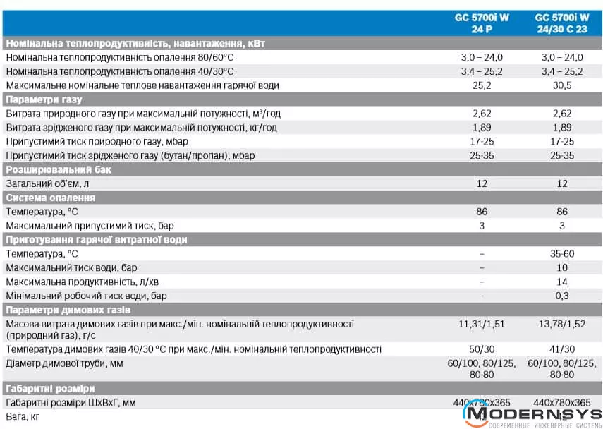 Технічні характеристики: Котел конденсаційний BOSCH (Бош) GC5700iW 24/30 C 23