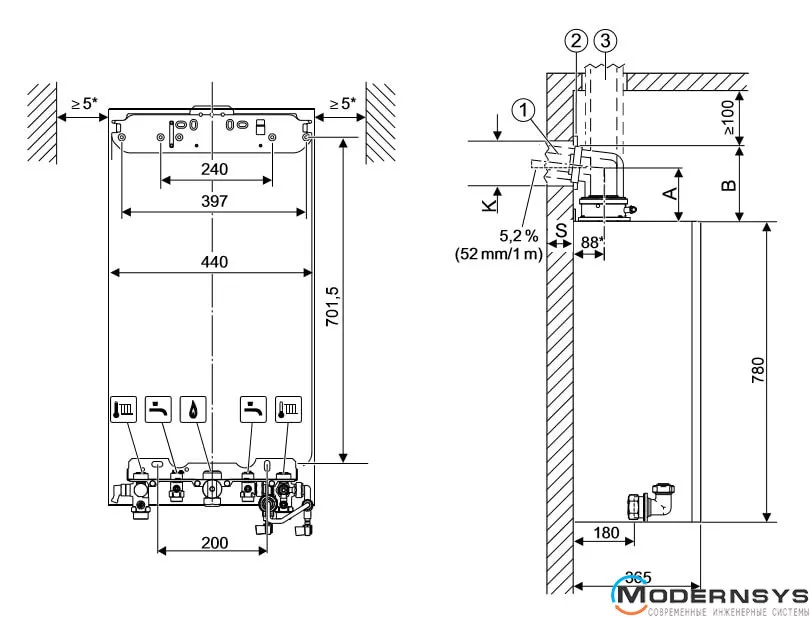 - Вбудований компенсаційний бак на 12 літрів (крім моделі Condens 5700i W 45 P 23);