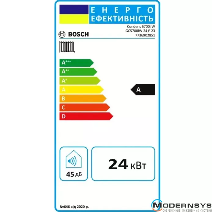 Технічні характеристики: Котел конденсаційний BOSCH (Бош) GC5700iW 45 P