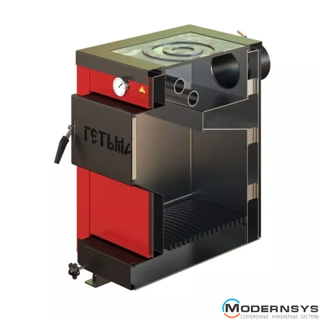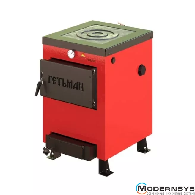 Декілька моделей котлів Гетьман, а саме 12П, 15П, 17.5П, 22П Тайга мають вбудовану чавунну плиту зверху котла, на якій ви зможете приготувати або розігріти їжу та воду. Купуючи такий котел, ви не залежатимете від перебоїв з електрикою або газом.