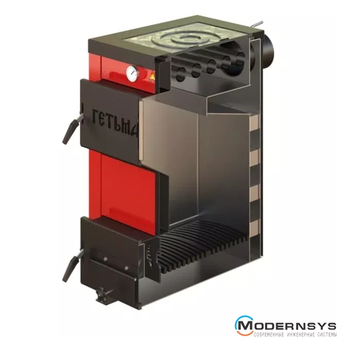 Котли лінійки Гетьман мають підвищену зйомку тепла завдяки пенальу, що омивається водою, і труб. Стінки камери згоряння також омиваються водою з усіх боків.
