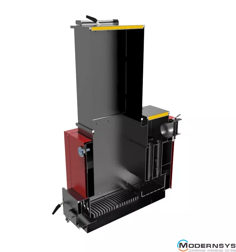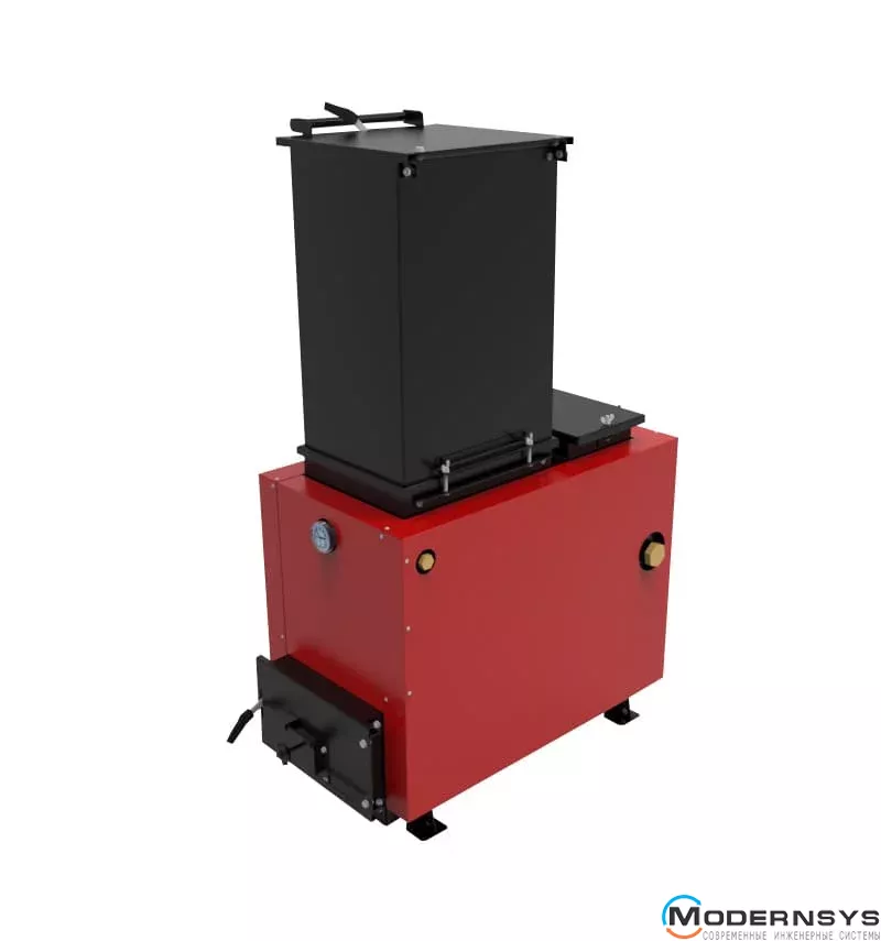 У даній моделі горить лише нижній шар палива, тому на одному завантаженні котел горітиме не менше 12 годин. А при встановленні додаткового бункера на вікно завантаження котла – мінімум 24 години.