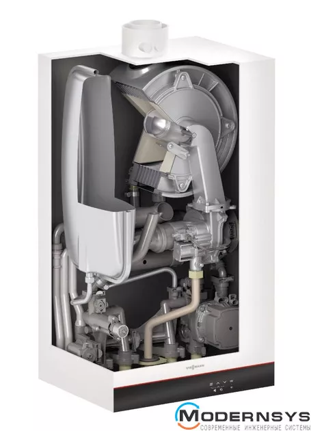 Vitodens 050-W ідеально підходить для модернізації квартир чи приватних будинків. Це комбінований конденсаційний котел (з пластинчастим теплообмінником для приготування гарячої води).
