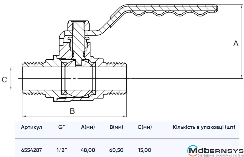 Кран кульовий 1/2" ПН ручка ASG (6554287)