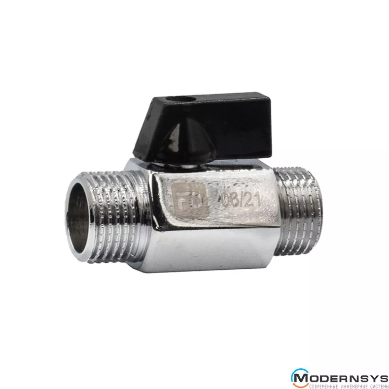 Кран міні FADO New ЗЗ – повнопрохідний неремонтопридатний кульовий кран із підвищеним ресурсом. Оснащений кільцем ущільнювача з EPDM. Корпус латунний, нікельований. Ручка із алюмінію. Різьблення приєднання - зовнішня/зовнішня.