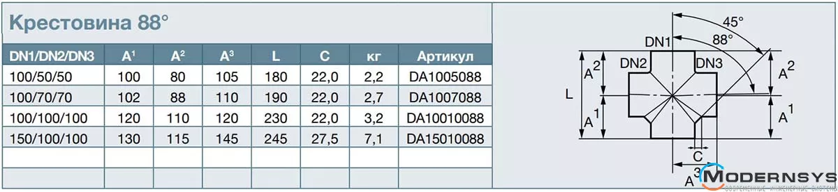 Хрестовина 88 ° - безрозрубний фітинг для монтажу трубопроводів під кутом 88 градусів.