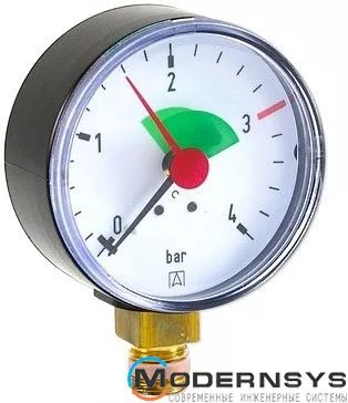Манометр радіальний Afriso 63мм, 0-4 бар, з'єдн. 1/4", к.т. 2,5 тип HZ для опалення (63911)