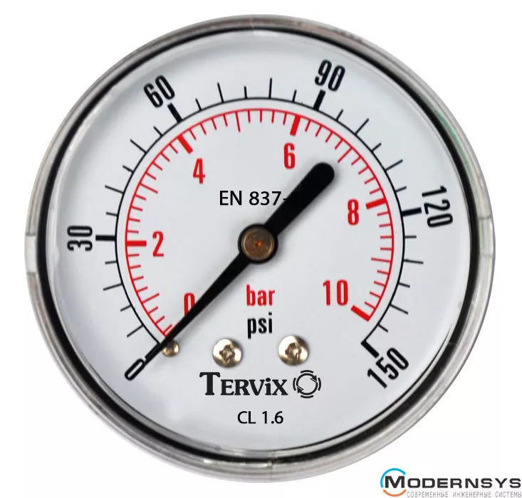 Опис: Манометр Tervix (Тервикс) Pro Line 50 0-10 бар 1/4" акс.