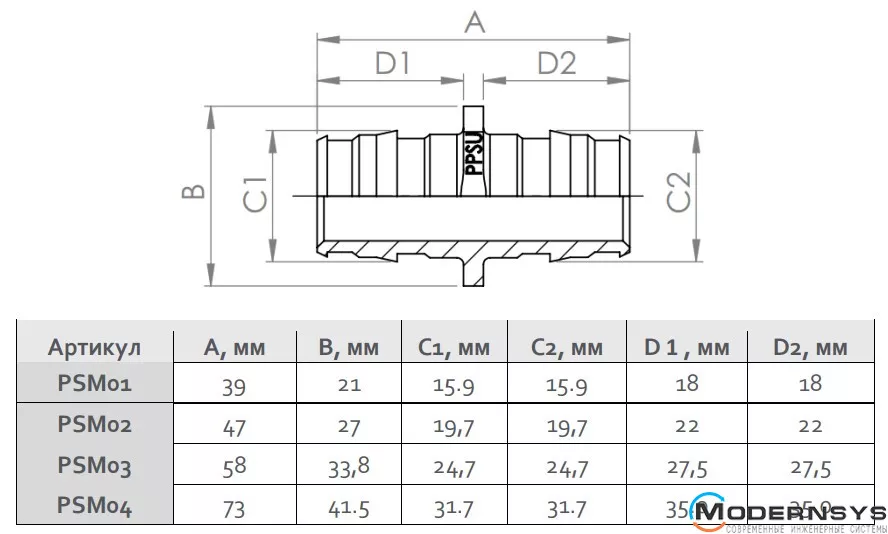 Технічні характеристики: Муфта FADO (Фадо) FAST LINE PPSU 16х16