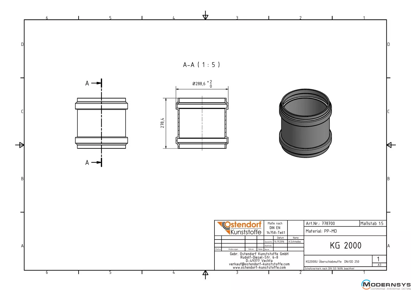 Муфта насувна (ремонтна) PPR для зовнішньої каналізації Ostendorf KG2000U - це продукт, який перевершує очікування в галузі каналізаційних систем. Вона виготовляється з високоякісного поліпропілену (PP), що надає їй неймовірної міцності та надійності.