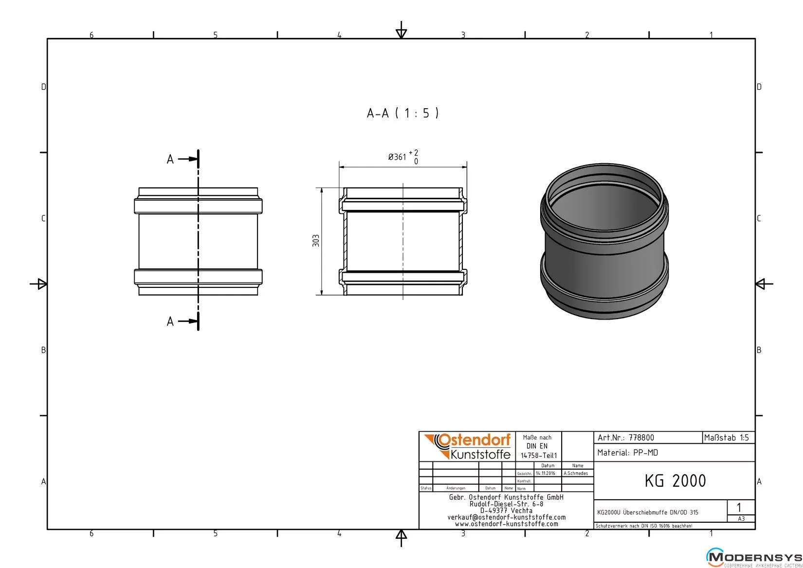 Технічні характеристики: Муфта каналізаційна ремонтна Ostendorf (Остендорф) KG2000U 315 мм