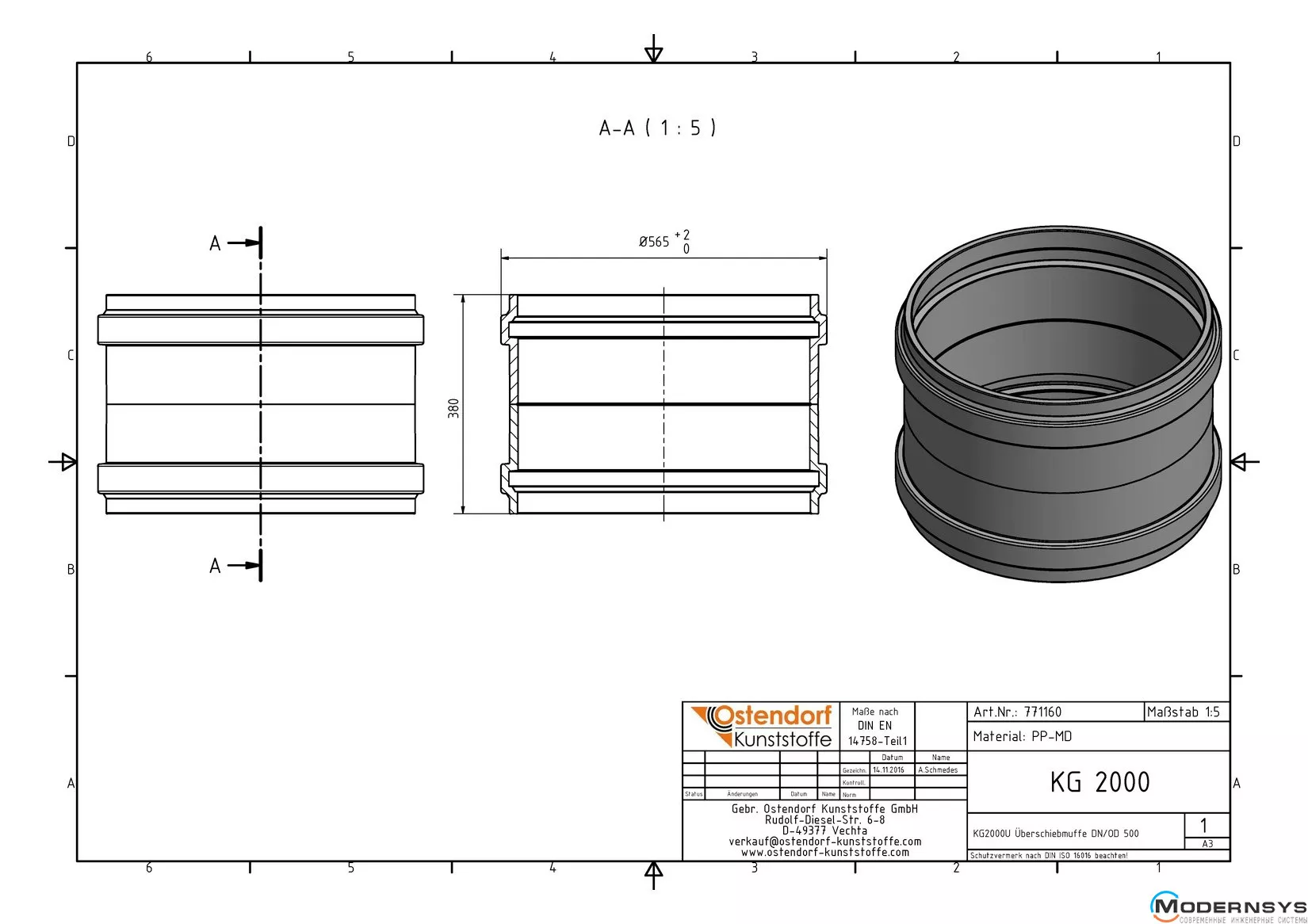 Технічні характеристики: Муфта з'єднувальна каналізаційна Ostendorf (Остендорф) KG2000MM 500 мм